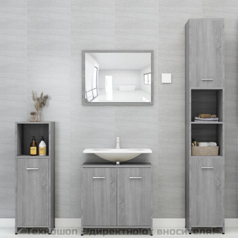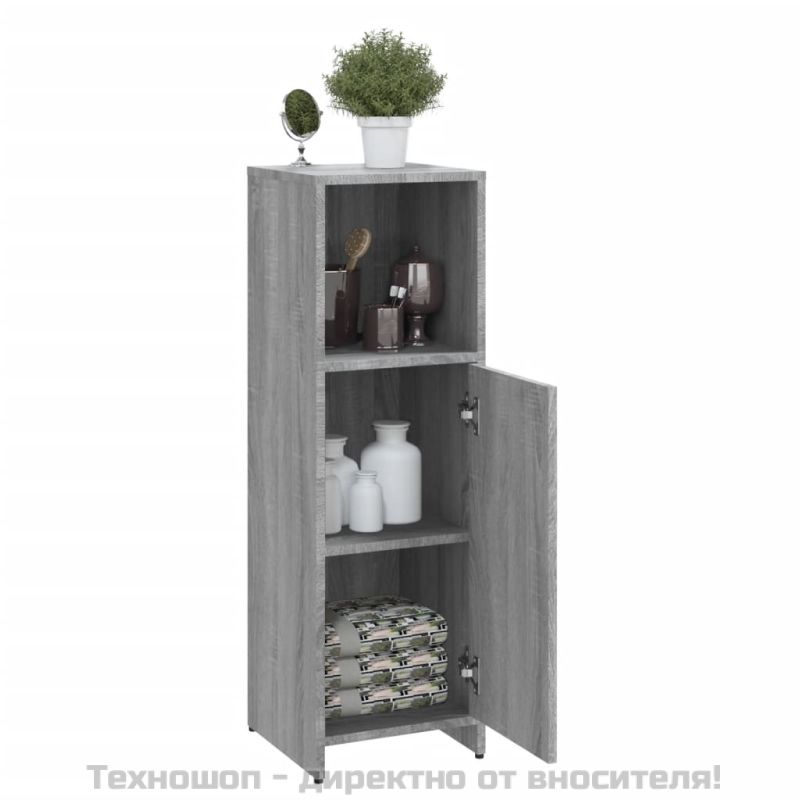 Шкаф за баня, сив сонома, 30x30x95 см, инженерно дърво