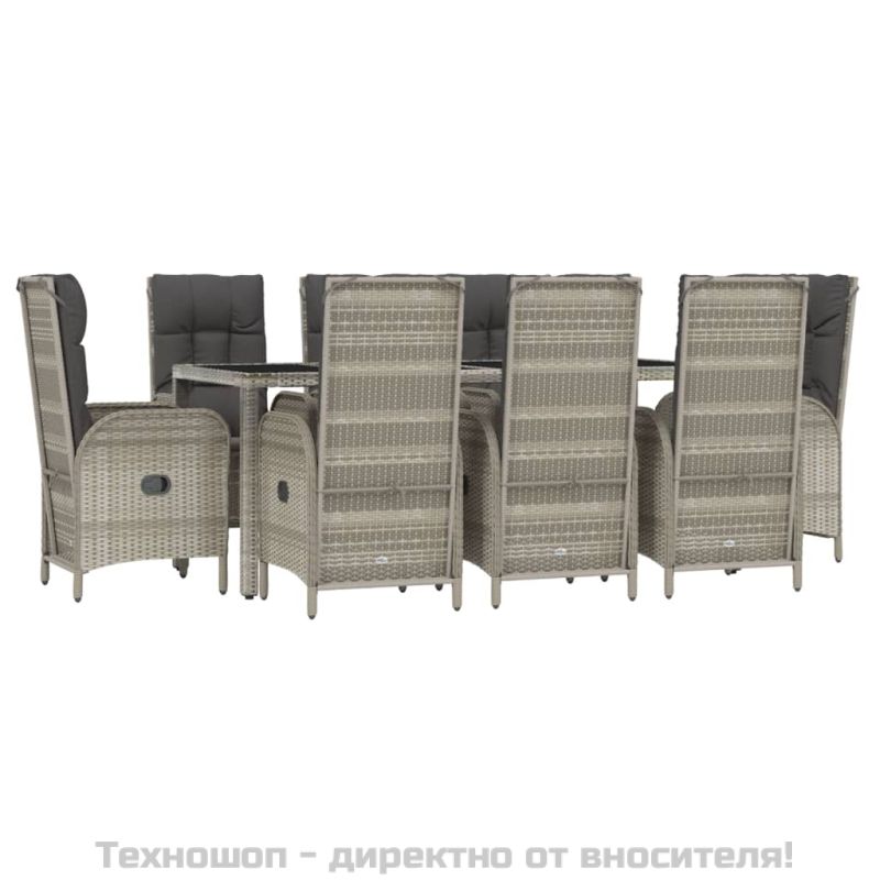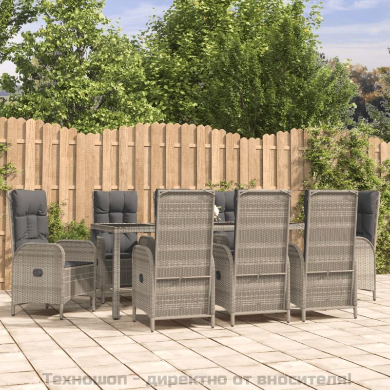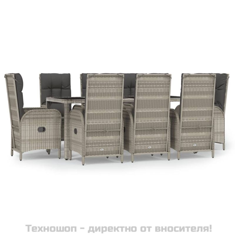 Градински трапезен комплект 9 части с възглавници сив полиратан