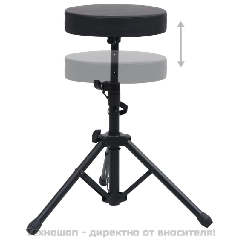 Този регулируем на височина стол за барабан е идеален спътник за вашия барабан и други музикални инструменти. Столът за барабан е изработен от здрава стомана с издръжливи крака триноги, което го прави стабилен и изключително издръжлив. С регулируеми настройки за височина, тази табуретка е подходяща за барабанисти с всякакъв ръст. Благодарение на сгъваемите крака, можете да сгънете музикалната табуретка за лесно съхранение или да я носите с вас на следващия си концерт. Тази подплатена табуретка на статив ви предлага максимален комфорт при седене.