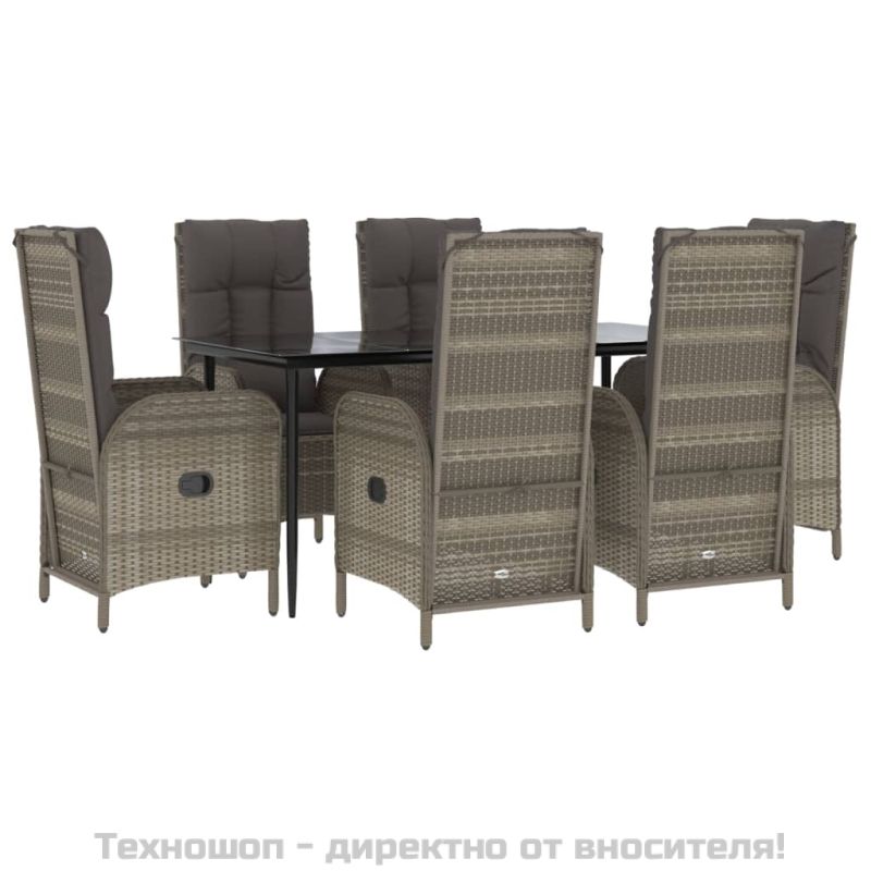 Градински трапезен комплект 7 части с възглавници сив полиратан