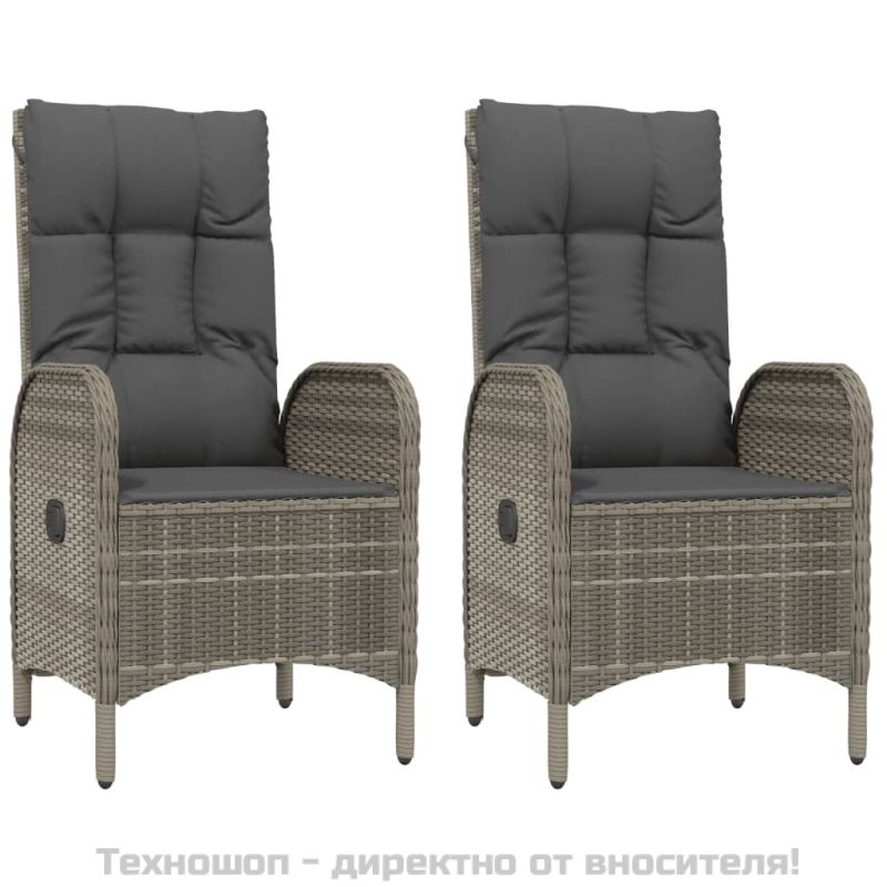 Градински трапезен комплект 5 части с възглавници сив полиратан