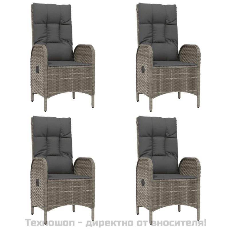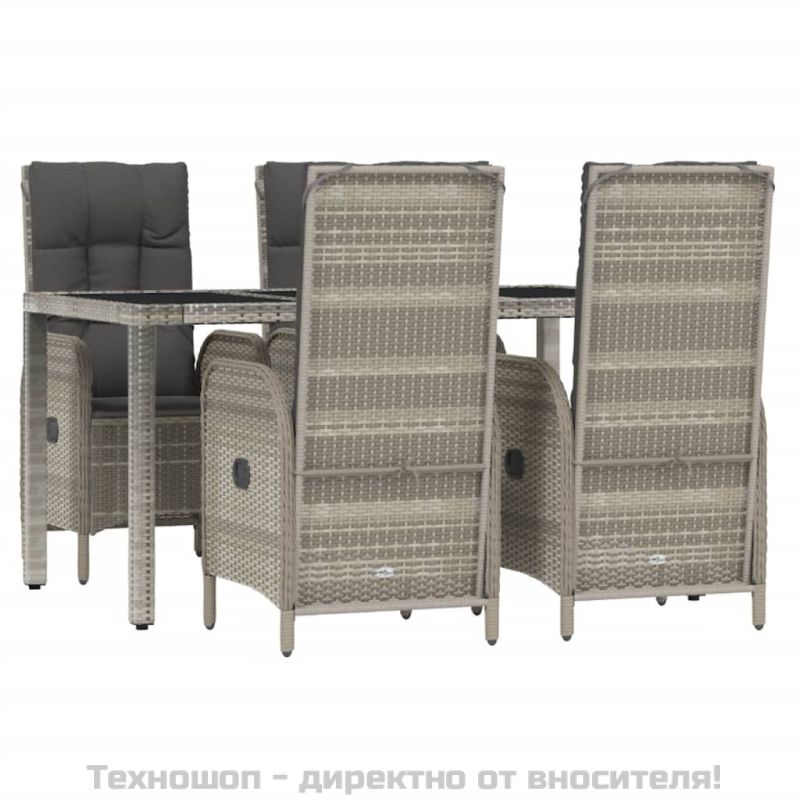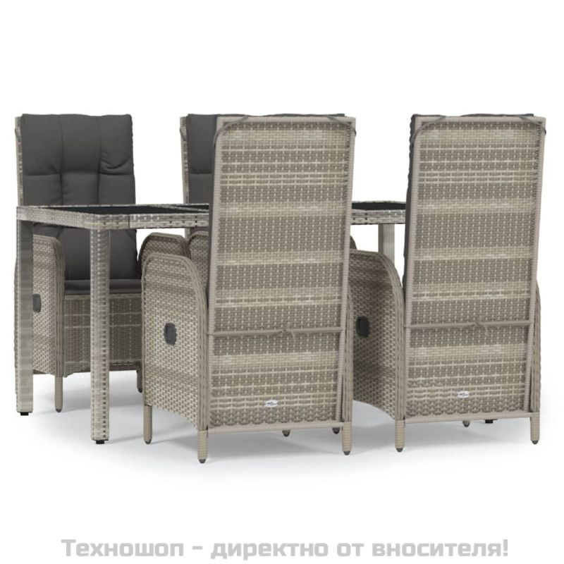 Градински трапезен комплект 5 части с възглавници сив полиратан