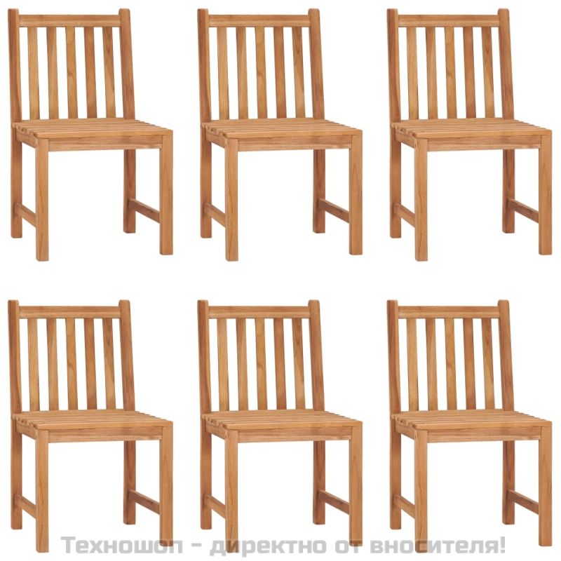 Този дървен градински трапезен комплект добавя нотка естествен чар към вашата кухня, градина или вътрешен двор. Тази мебел от тик е изработена от изключително издръжлива тикова твърда дървесина, която е суха – изсушена в пещ, а след това фино шлифована, за да ѝ се придаде много гладък вид. Тиковото дърво е известно с изключителната си здравина и устойчивост на атмосферни влияния, което го прави далеч по-подходящо за градински мебели от всеки друг вид дърво. Тиковата дървесина е идеалният избор, ако искате да закупите дълготрайна градинска мебел. Нанесен е красив финиш на водна основа за придаване на топъл цвят на дървото. Благодарение на изключително дебелия плот и големите крака тази маса от масивно дърво е много издръжлива и може да предостави удобство при настаняването на вашите гости. Столовете се отличават с изискана визия, която може незабавно да се слее с всяко жилищно пространство. Благодарение на водоустойчивата си функция и класическия си външен вид можете да поставите този комплект мебели навсякъде във вашия любим дом – на закрито или навън! Максимално 110 кг на седалка.