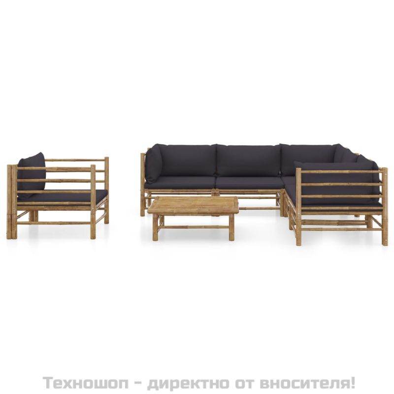 Градински лаундж комплект тъмносиви възглавници 7 части бамбук