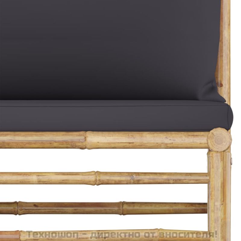 Градински лаундж комплект тъмносиви възглавници 11 части бамбук