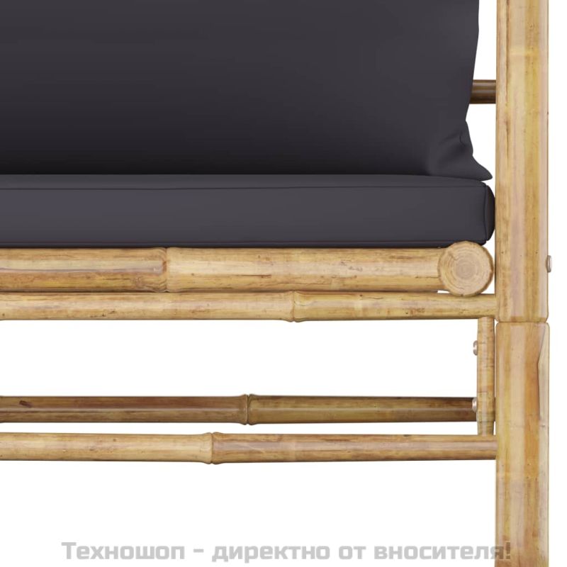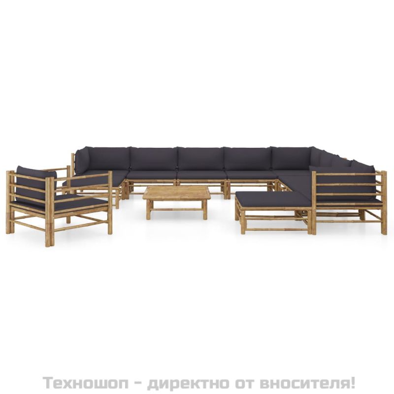 Градински лаундж комплект тъмносиви възглавници 12 части бамбук