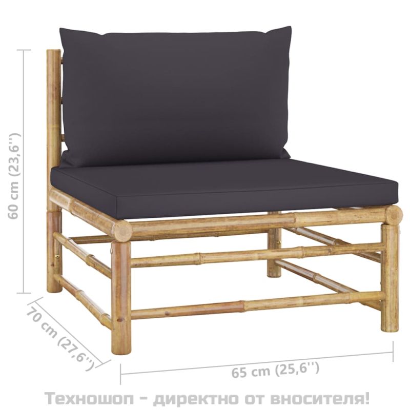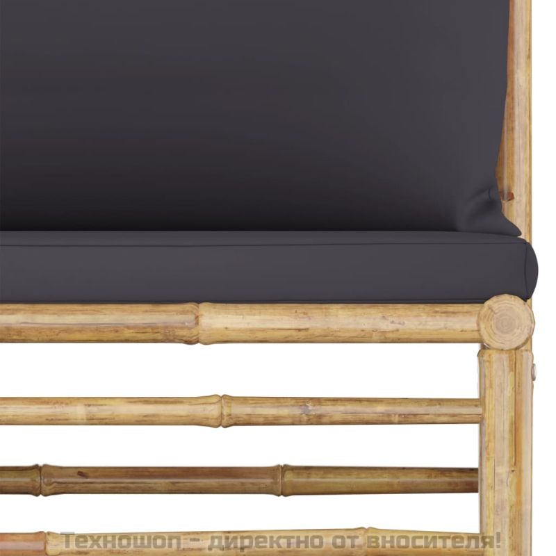 Градински лаундж комплект тъмносиви възглавници 7 части бамбук