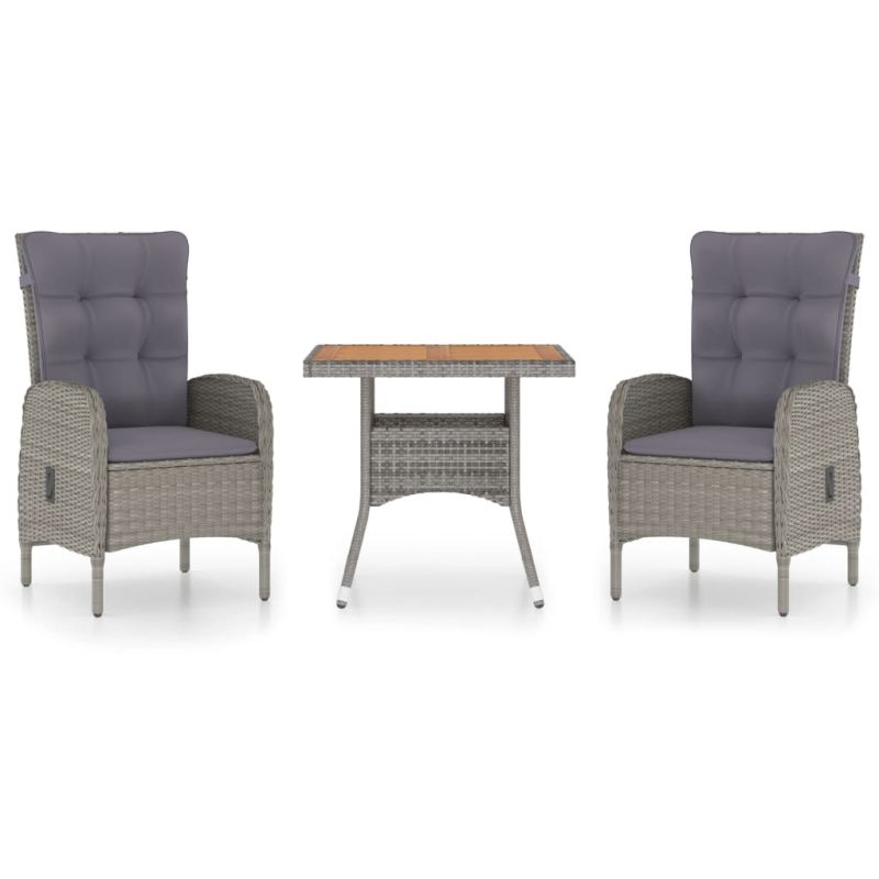 Градински трапезен комплект, 3 части, полиратан и акация, сив