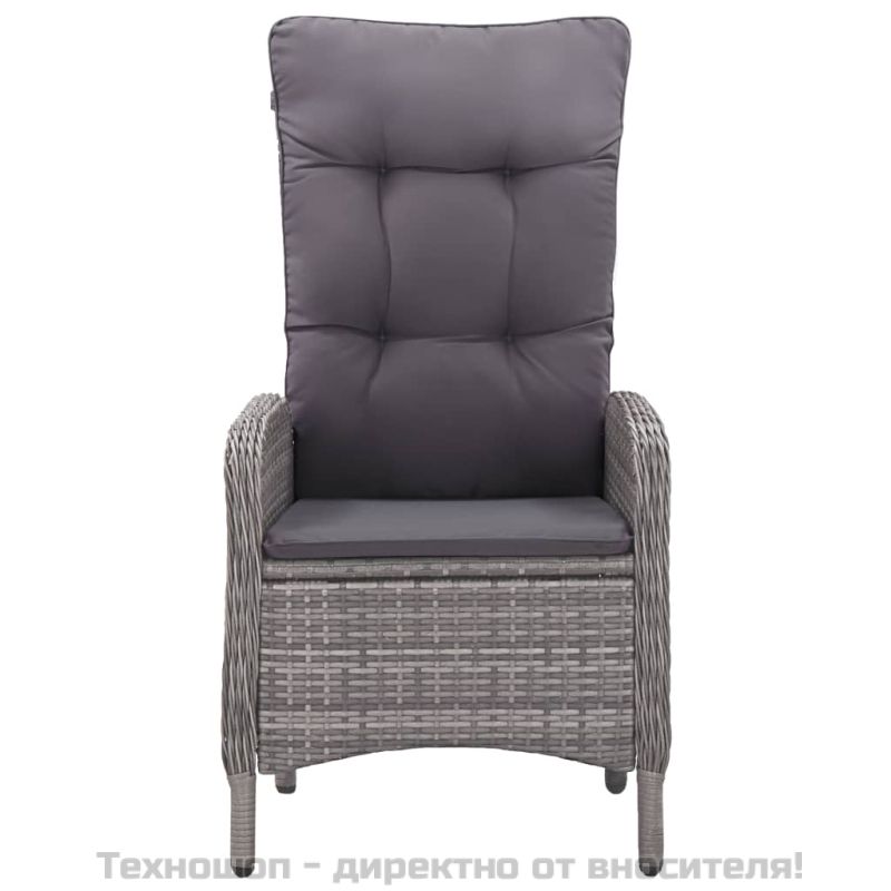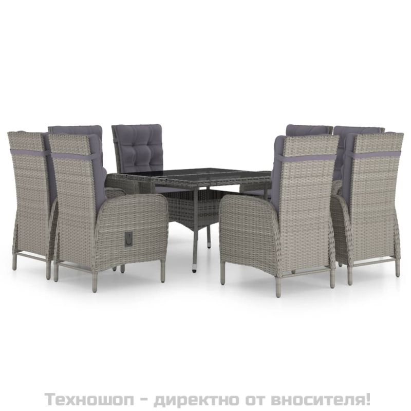 Градински трапезен комплект, 9 части, полиратан и стъкло, сив