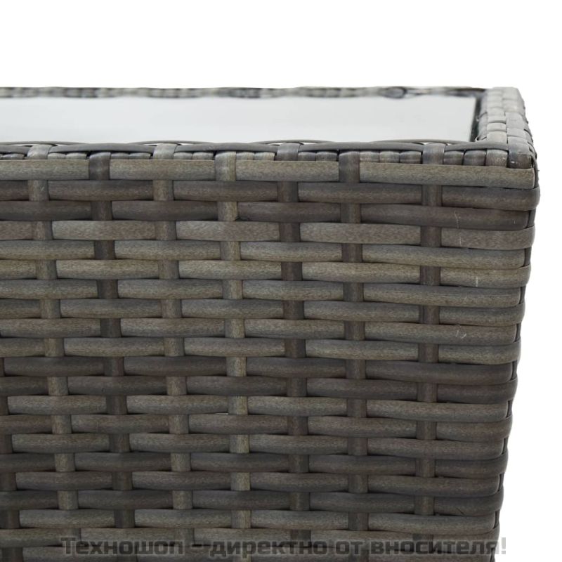 Градински бистро комплект, 3 части, полиратан и стъкло, сив