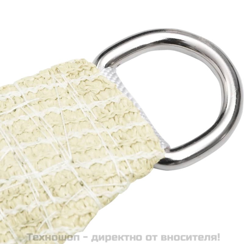 Създайте малко убежище от слънцето навсякъде, където пожелаете, с този HDPE сенник. Това е идеалният сенник, който може да се използва във всякакви външни пространства като вашата градина, тераса, детска площадка или балкон. Слънчевото платно, изработено от 100% HDPE (високоплътен полиетилен), ви защитава от пряка слънчева светлина, позволява достатъчно въздух и е водопропускливо. HDPE е специално обработен, така че е устойчив на мухъл и UV-лъчи. Сенникът е лесен за сглобяване с неръждаемите крепежни елементи във всеки ъгъл и включените въжета. Добре е да знаете: Този продукт изисква съвместими куки (не са включени) за правилна употреба. За да осигурите правилно прилягане, моля, имайте предвид общата дължина на куки и продукта при покупка.
