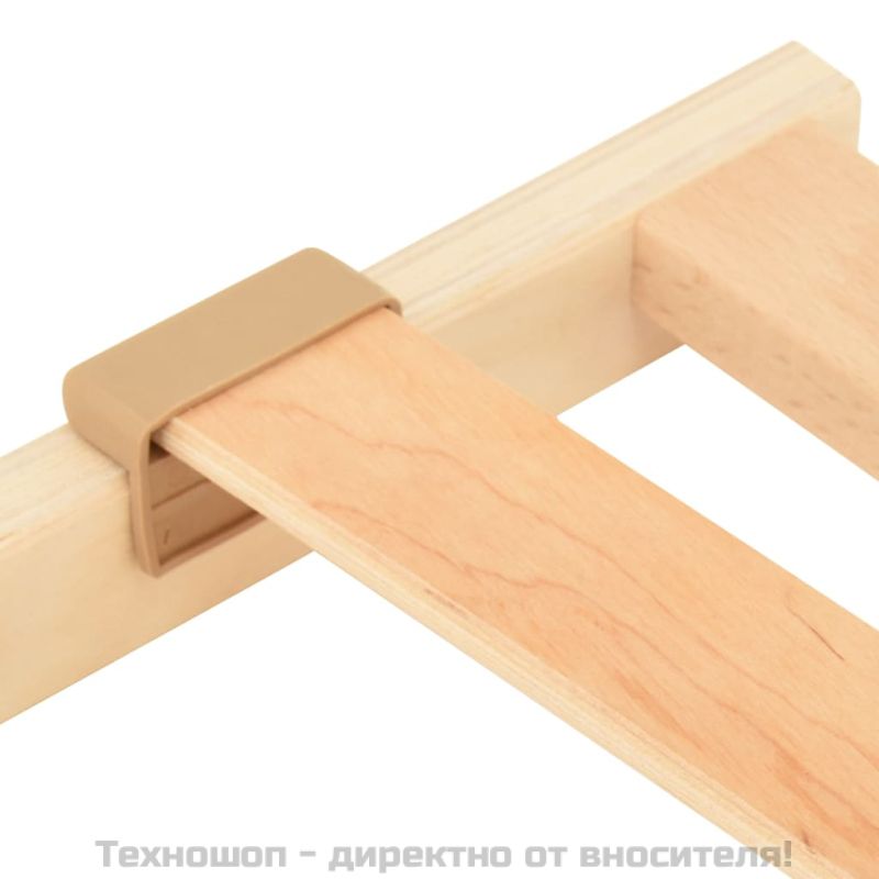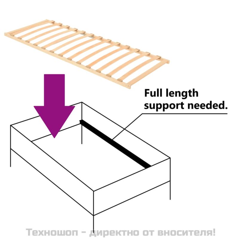 Тази удобна дървена основа за легло с ламели е добър избор за добър нощен сън! С рамка от масивна букова дървесина и брезови летви, основата на леглото е здрава и издръжлива. Двата края на летвите са закрепени на място от гумени капачки SBS за по-добра стабилност на цялата конструкция. Просто се насладете и се отпуснете на тази рамка за легло. Моля, обърнете внимание, че доставката включва само основа с ламели; матрак и рамка за легло не са включени. Полезно е да знаете:Необходим е монтаж поради ограниченията за доставка, които ограничават размера на опаковката до максимум 120 см.Тази рамка за легло е с дизайн с основа с ламели и включва летвите.