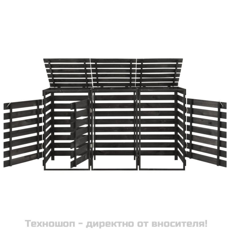 Троен навес за кофи за смет, 210x75x121 см, боядисан бор масив