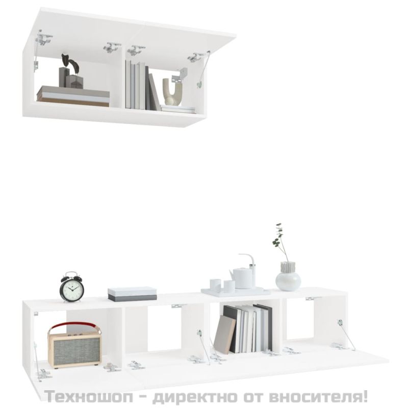Комплект ТВ шкафове от 3 части, бял, инженерно дърво