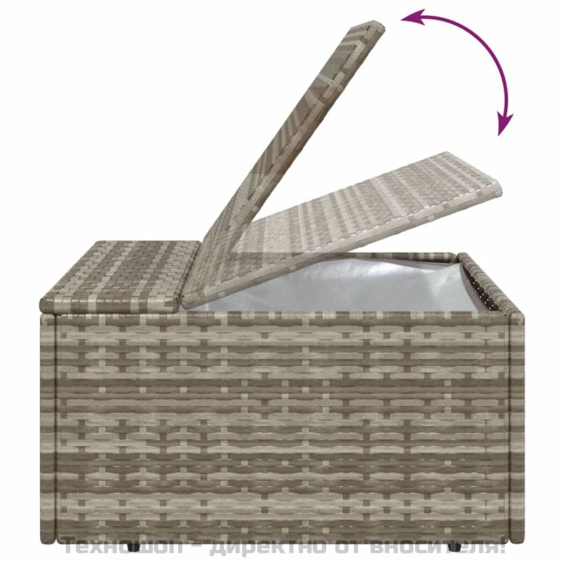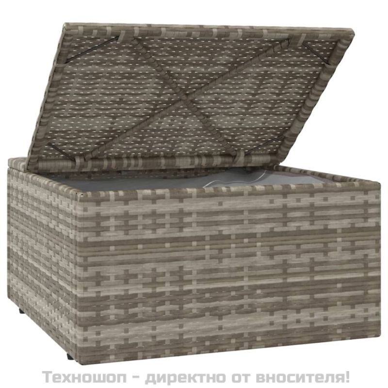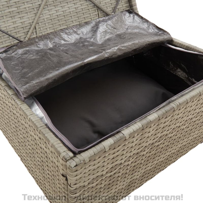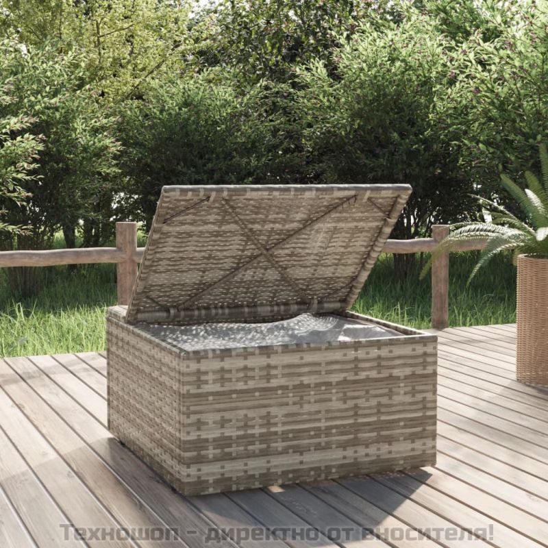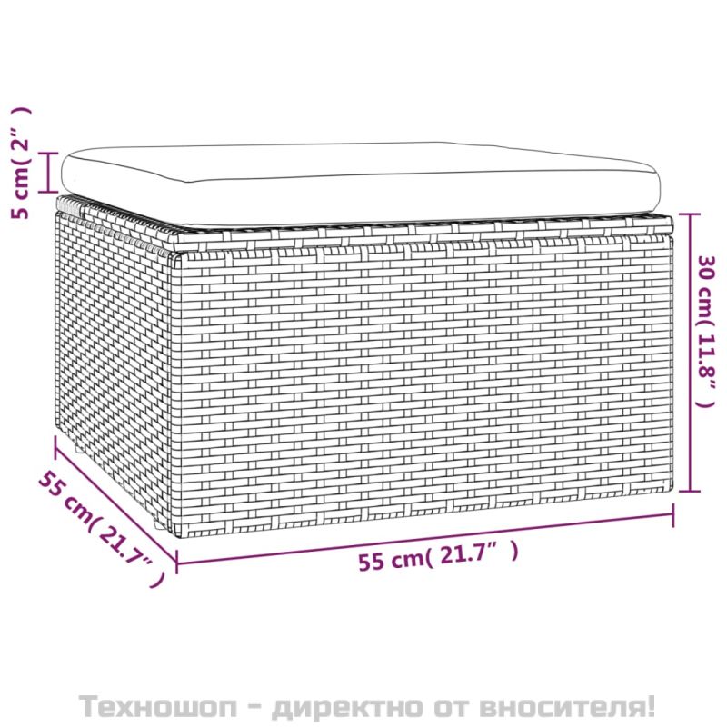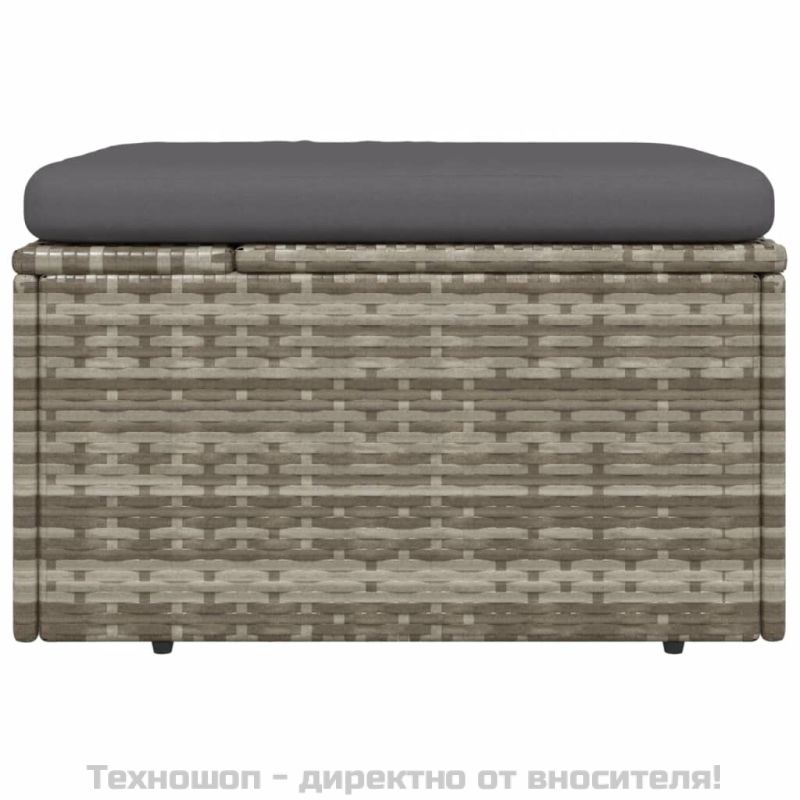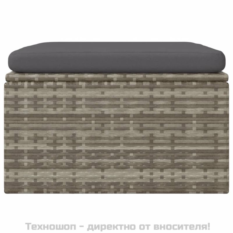 Градинска табуретка с възглавница, сива, 55x55x30 см, полиратан