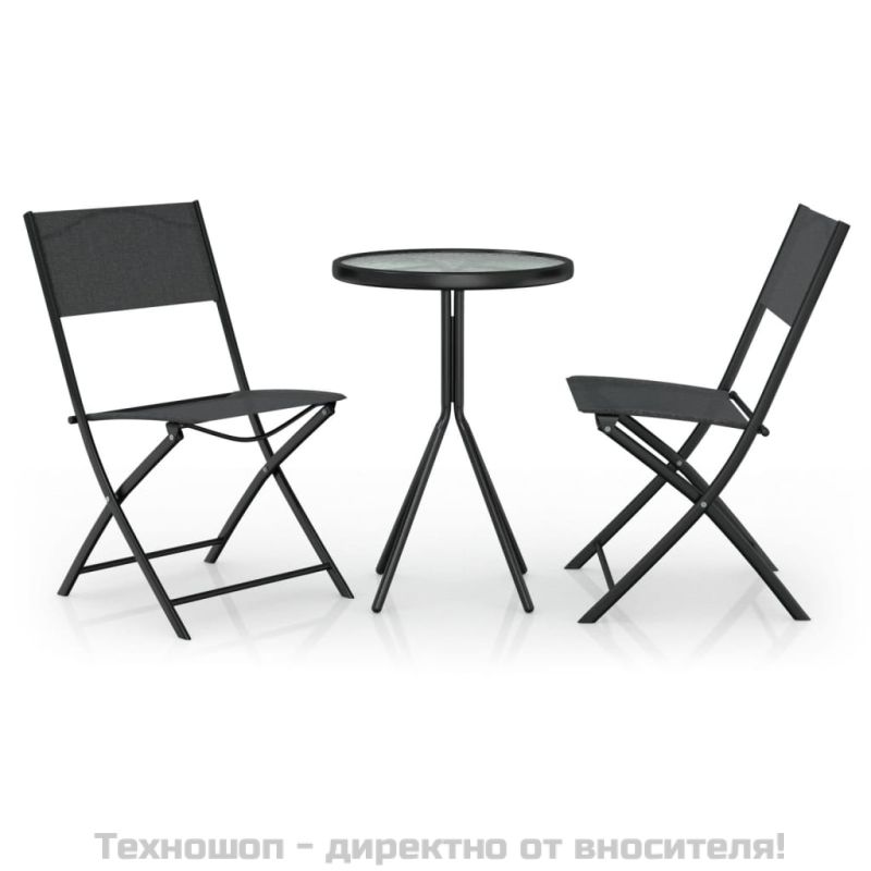 Бистро комплект от 3 части, стомана, черен