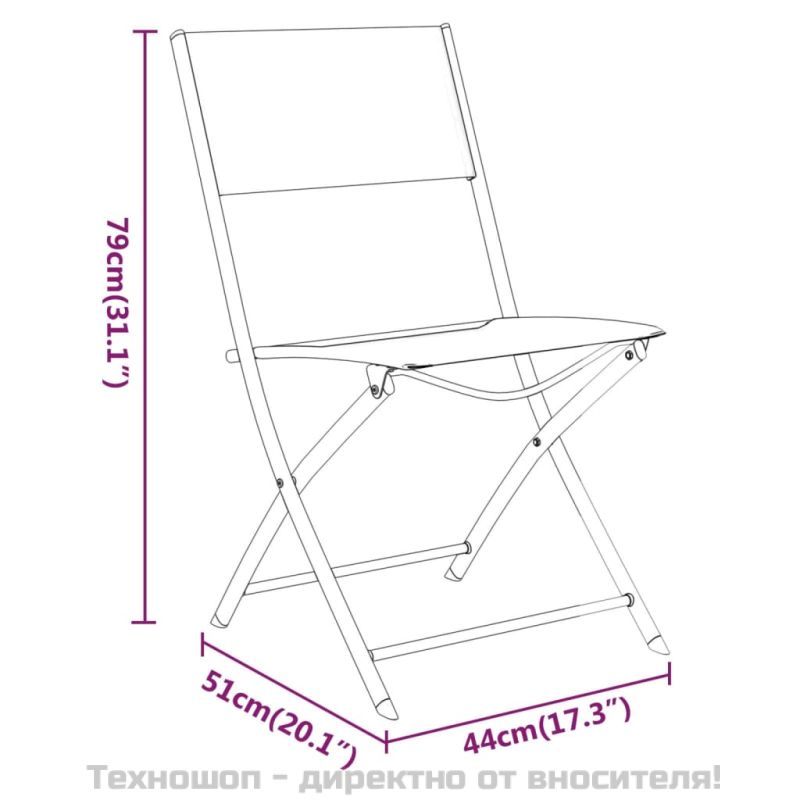 Този бистро комплект е чудесен избор за хранене, четене и почивка във вашия вътрешен двор или балкон. Стоманена рамка: Този комплект мебели включва стоманена рамка, която гарантира неговата здравина и стабилност.Първокласен материал: Столовете са изработени от устойчив на атмосферни влияния текстил, който е дишащ, издръжлив и лесен за почистване. Плотът е изработен от закалено стъкло, което се почиства лесно.Сгъваем дизайн: Благодарение на сгъваемия си дизайн столовете могат лесно да се сгънат до компактен размер за спестяване на място за съхранение. Забележка:Забележка: За да удължите живота на вашите градински мебели, ви препоръчваме да ги защитите с водоустойчиво покритие.