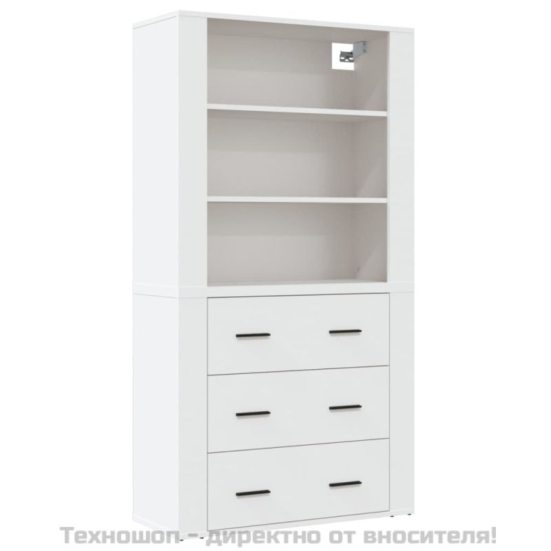 Търсите стилен висок шкаф? Този висок шкаф добавя уникален чар към вашия интериор! Издържлив материал: Инженерната дървесина е с изключително качество с гладка повърхност и се отличава със здравина, стабилност и устойчивост на влага.Достатъчно място за съхранение: Сайдбордът предоставя достатъчно място за съхранение, където да държите различни ваши вещи добре организирани и леснодостъпни.Функция за монтиране на стена: Шкафът за съхранение може да се монтира на стената в горната част на бюфета, за да се създаде висок шкаф, което спестява място на пода. По този начин можете да увеличите максимално пространството на пода и да поддържате ред и чистота. Добре е да се знае:За да бъде сглобяването възможно най-лесно, всеки продукт се доставя с ръководство.Винтовете и дюбелите за вътрешната стена не са включени. Съветваме ви да намерите и използвате винтове и дюбели, подходящи специално за вашите стени. Ако не сте сигурни, можете да се консултирате с професионалист. Моля, прочетете и следвайте всяка стъпка от инструкциите. Внимание:За предотвратяване на преобръщане този продукт трябва да се използва с предоставения анкер за стена.