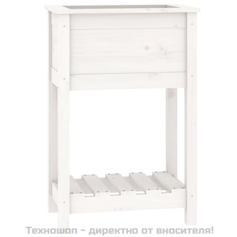 Плантер с рафт, бяла, 54x34,5x81 см, борово дърво масив