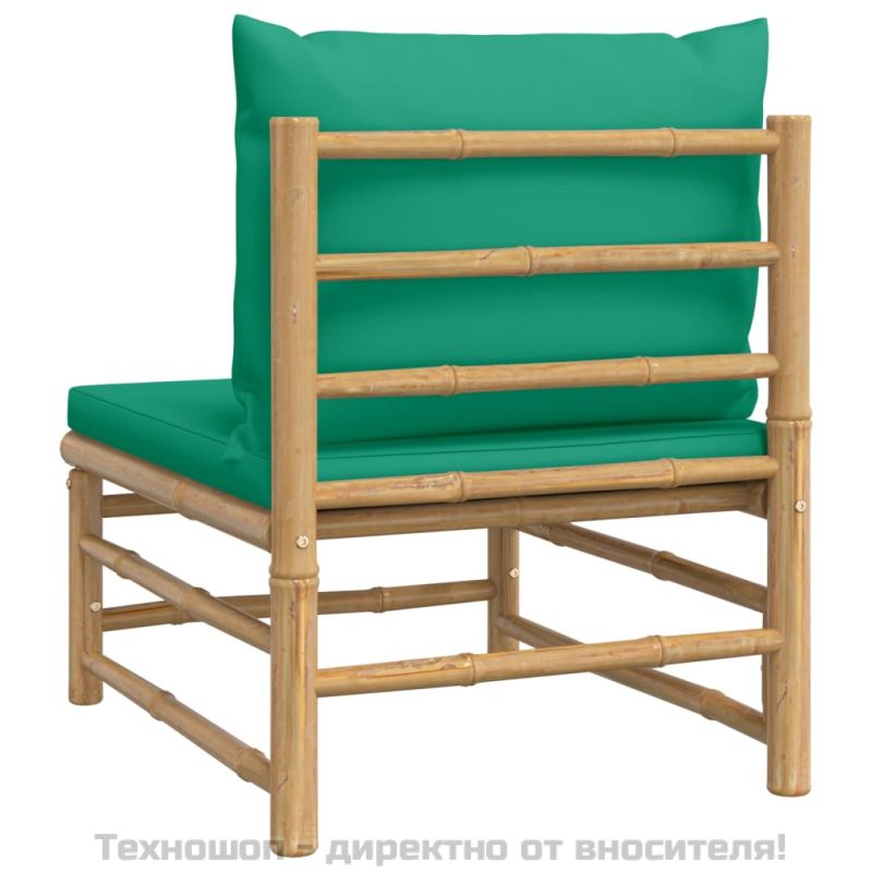 Насладете се на чаша кафе или чай при приятно време във вашето външно пространство с този елегантен градински среден диван от бамбук! Издръжлив материал: Бамбукът е известен със своята гъвкавост и твърдост. Мебелите от бамбук са добър вариант, когато искате здрави външни мебели, изработени от естествени материали.Удобно седене: Облегалката добавя повече комфорт при седене на градинския диван. Освен това дебело подплатените възглавници осигуряват комфорт по време на седене.Модулен дизайн: Външният диван е гъвкав и лесен за преместване, така че можете да го комбинирате с други модулни сегменти в уеб магазина, за да създадете свои собствени лични конфигурации за отдих на открито! Забележка:За да сте сигурни, че вашите външни мебели ще останат красиви, ви препоръчваме да ги защитите с водоустойчиво покривало.Добре е да се знае:За да бъде сглобяването възможно най-лесно, всеки продукт се доставя с ръководство.
