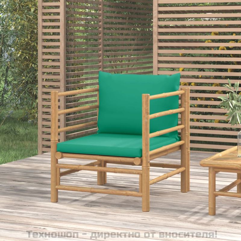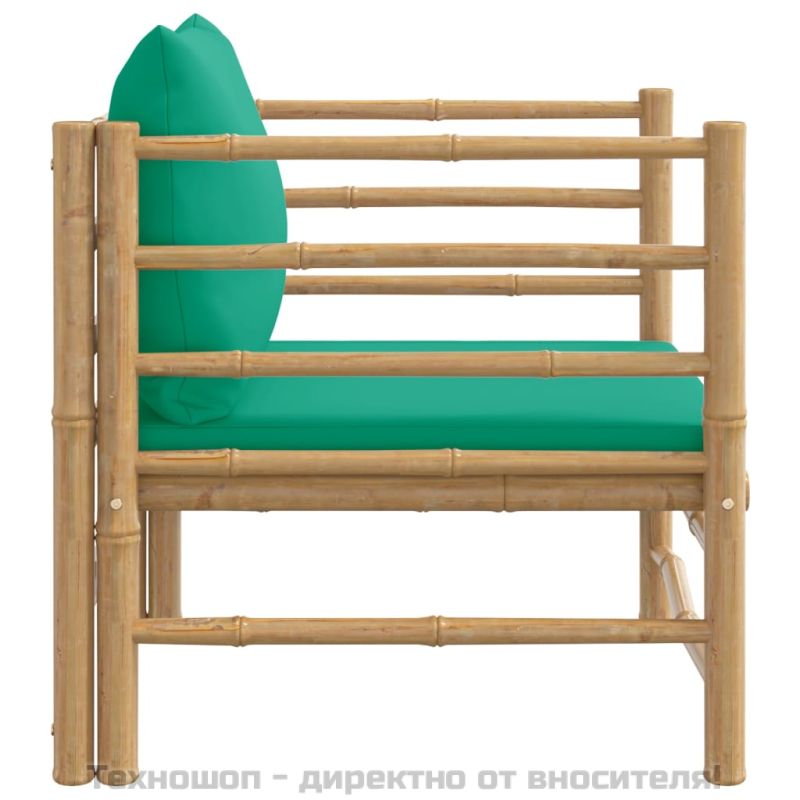 Градински диван със зелени възглавници бамбук