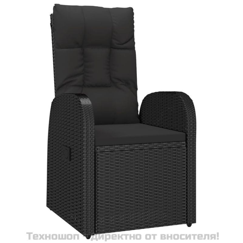 Градински трапезен комплект 7 части възглавници черен полиратан