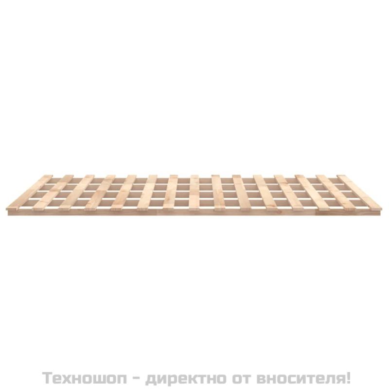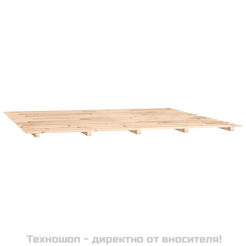 Осигурете си по-добър спокоен нощен сън с тази дървена рамка за легло! Тя представлява приветливо допълнение към всяка спалня. Масивна борова дървесина: Масивната борова дървесина е красив естествен материал. Боровата дървесина е с продълговати шарки, а чеповете придават на материала характерния му рустик вид.Стабилна рамка за легло: Дървената рамка осигурява здравина и стабилност.Здрави ламели: Ламелите от шперплат осигуряват добро разпределение на теглото, като гарантират, че матракът остава на място при всяко завъртане на тялото ви по време на сън. Забележка:Тази рамка за легло разполага с дизайн с ламели и включва ламелите.Доставката включва само рамка за легло. Матракът не е включен. Можете да проверите в нашия магазин за подходящи матраци.Тази рамка за легло е подходяща за матрак с размери 200x200 см.Всеки продукт се доставя с ръководство за сглобяване в кашона за лесно сглобяване.