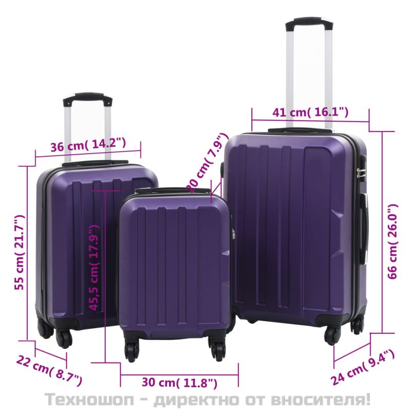 Комплект твърди куфари с колелца, 3 бр, лилави, ABS
