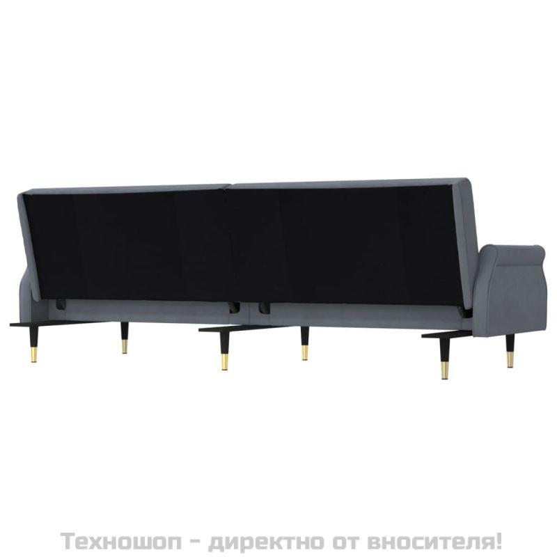 Разтегателен диван с възглавници, тъмносив, кадифе