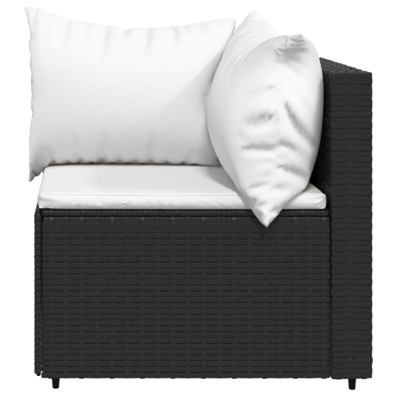 Градински ъглов диван с възглавници черен полиратан
