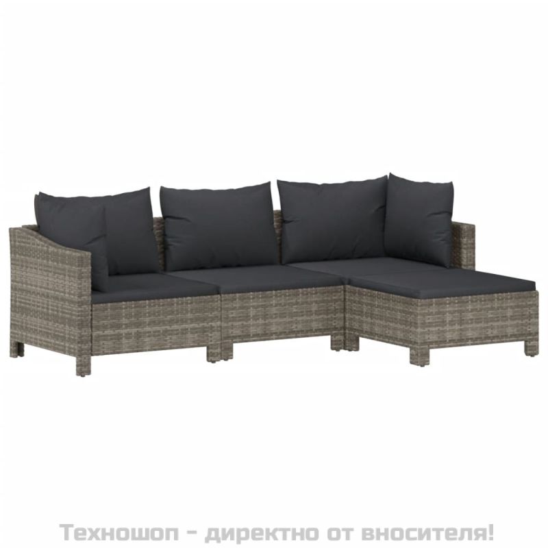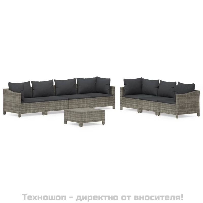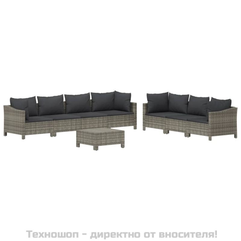 Градински комплект с възглавници, 8 части, полиратан, сив