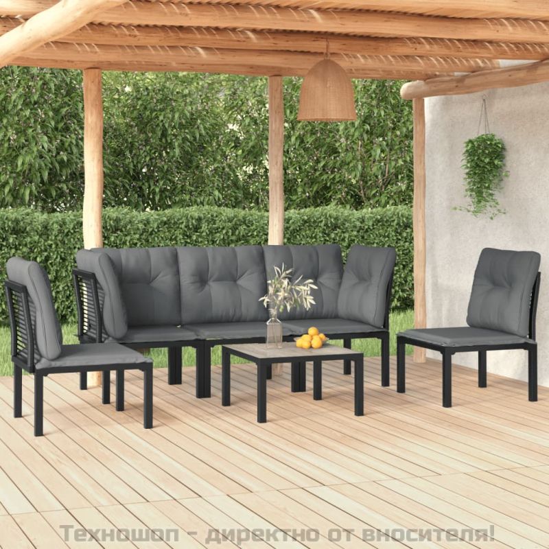 Градински лаундж комплект 6 части черно и сиво полиратан