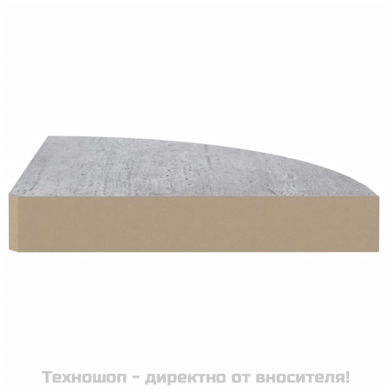 Стенен ъглов рафт, бетонно сиво, 25x25x3,8 см, МДФ