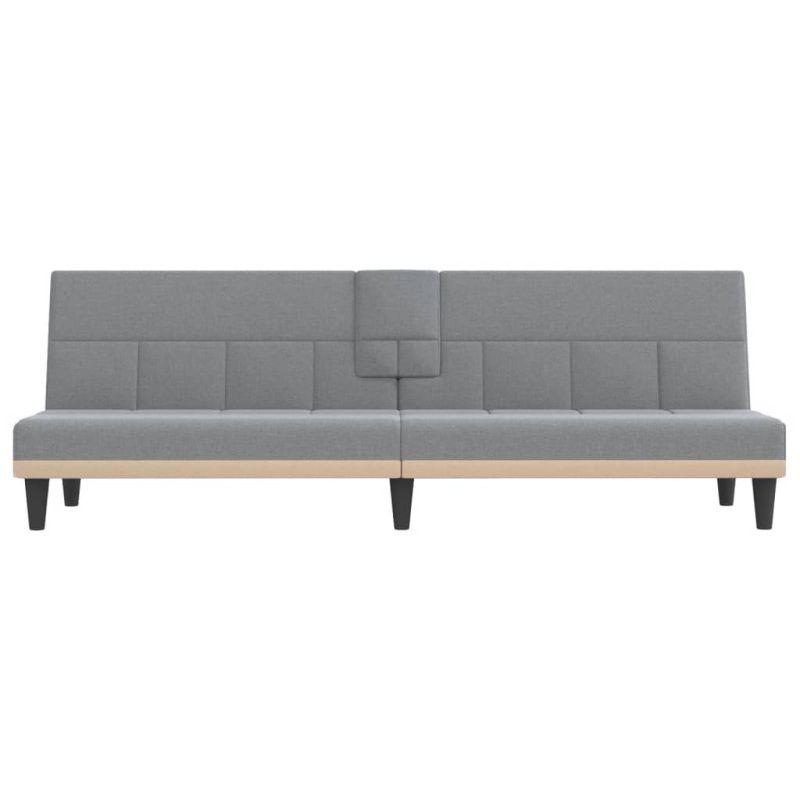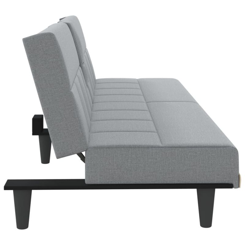 Разтегателен диван с поставки за чаши, светлосив, плат
