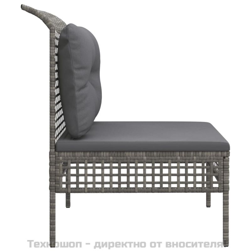 Градински среден диван с възглавница, сив, полиратан