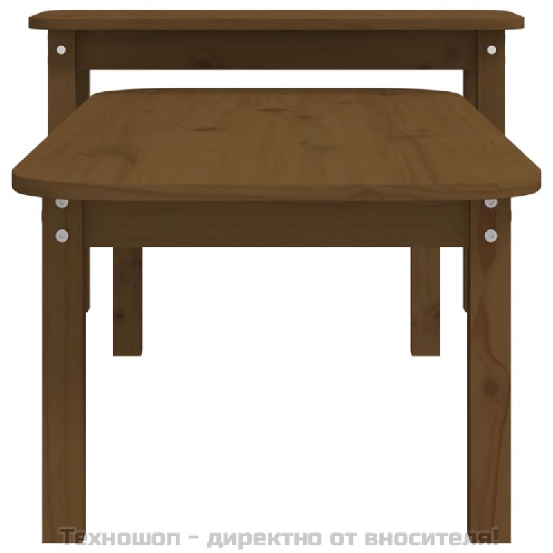 Комплект масички за кафе от 2 части, меденокафяво, бор масив