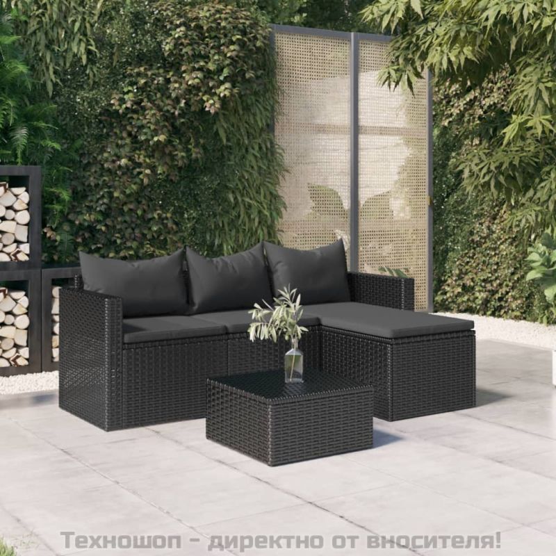 Градински лаундж комплект черен полиратан