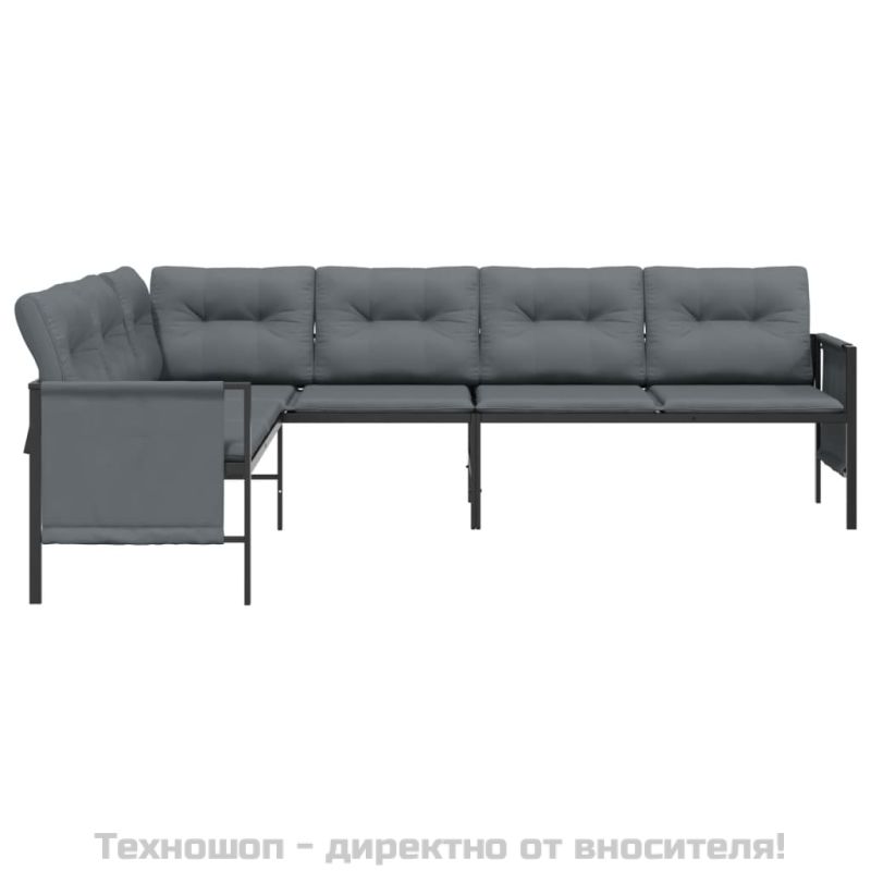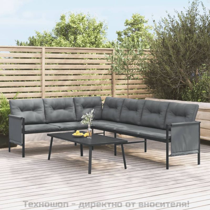 Този стилен и удобен градински ъглов диван е идеален избор, за да се отпуснете и да се насладите на времето, да подремнете или да поговорите с приятелите или семейството си. Здрав материал: Стоманата е изключително твърд и здрав материал. Затова предлага здравина и стабилност. Праховото боядисване и електрофорезно покритие върху стоманата създават защитен слой срещу износване.Стабилна рамка: Прахово боядисаната стоманена рамка с електрофорезно покритие осигурява здравина и стабилност на градинския диван.Удобно място за сядане: Дебело подплатените възглавници на външния диван са много удобни, което добавя допълнително комфортно изживяване при сядане.Странична чанта за съхранение: Страничните чанти за съхранение на градинския диван могат да държат основните ви вещи добре организирани и на достъпно място. Добре е да се знае:За да бъде сглобяването възможно най-лесно, всеки продукт се доставя с ръководство.Забележка:За да сте сигурни, че вашите външни мебели ще останат красиви, ви препоръчваме да ги защитите с водоустойчиво покривало. Максимално 110 кг на седалка. Съобразете се с риска от открит огън и други източници на силна топлина в близост до продукта.