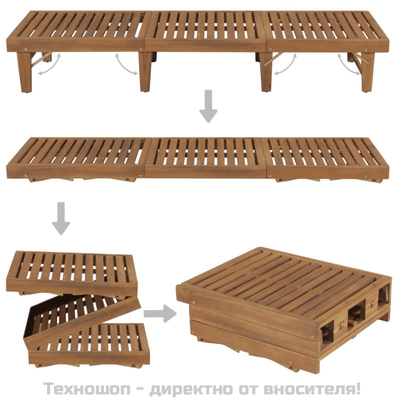 Сгъваем шезлонг с шалте, акациево дърво масив