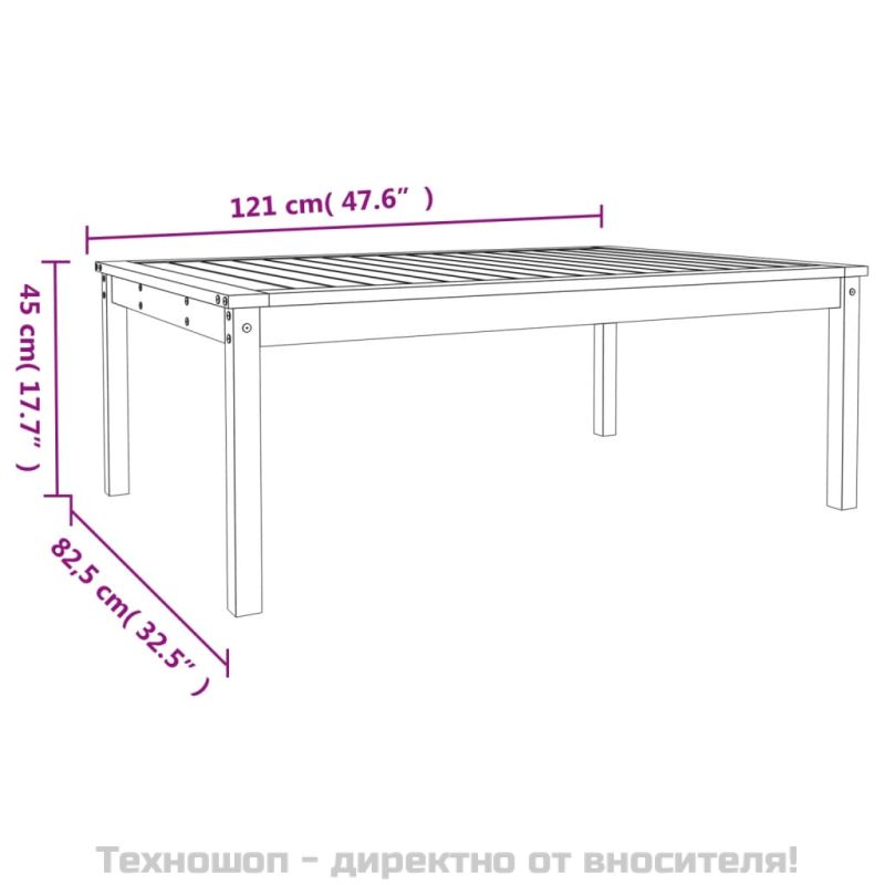 Насладете се на хубава храна със семейството и приятелите си около тази дървена градинска маса! Тя ще внесе нотка елегантност във вашия двор, градина или тераса. Масивна борова дървесина: Масивната борова дървесина е красив естествен материал. Боровата дървесина е с продълговати шарки, а чеповете придават на материала характерния му рустик вид.Стабилен плот: Плотът предлага отлична опора за вашите напитки, закуски, кошници с плодове и любимите ви декорации.Здрава рамка: Дървената рамка гарантира здравината и стабилността на масата за отдих.Широки приложения: Градинската лаундж маса със своя забележителен дизайн създава приятна цялостна визия, която се интегрира без усилие във всяка среда. Добре е да се знае:За да бъде сглобяването възможно най-лесно, всеки продукт се доставя с ръководство.Забележка:За да сте сигурни, че вашите външни мебели ще останат красиви, ви препоръчваме да ги защитите с водоустойчиво покривало.