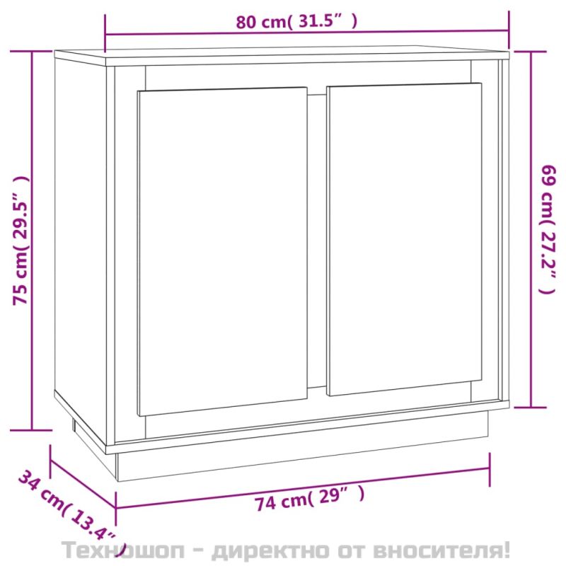 Сайдборд, сив сонома, 80x34x75 см, инженерно дърво
