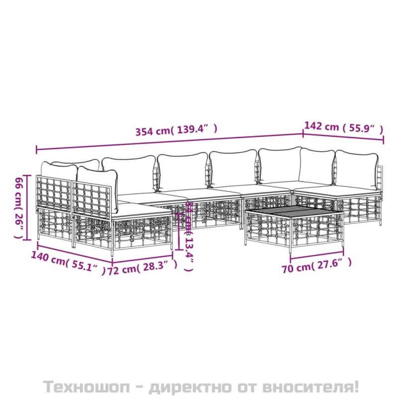 Градински комплект с възглавници 8 части антрацит полиратан