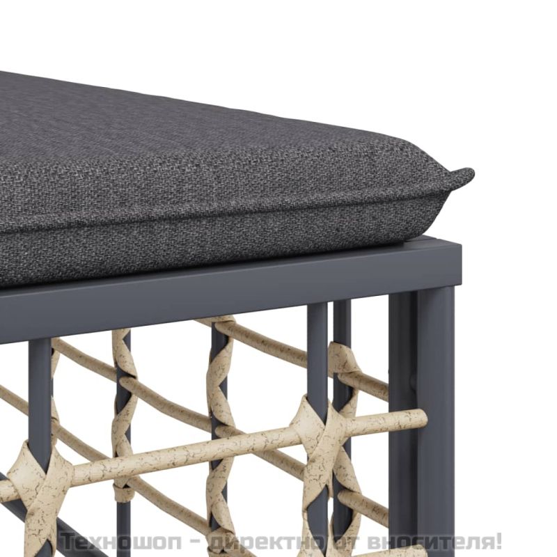 Насладете се на уютно кафе във вашето външно пространство с този градински лаундж комплект! Той е идеално допълнение към вашата градина и тераса, създавайки незабравимо впечатление! Материал, устойчив на атмосферни влияния: Полиратанът е устойчив на атмосферни влияния и лесен за почистване. Той остава красив отвън за дълъг период от време. По-икономичен е от другите материали, като същевременно предлага отлично качество, удобство и естетичен вид.Здрава и стабилна рамка: Стоманената рамка на лаундж комплекта осигурява здравина и стабилност.Удобно седене: Облегалката добавя допълнителен комфорт при седене за комплекта за сядане. Освен това дебело подплатените възглавници осигуряват комфорт по време на седене.Здрав плот: Здравият плот на масичката за кафе е идеален за поставяне на закуски, напитки, вази, купи с плодове или други декоративни елементи.Модулен дизайн: Градинският комплект мебели е гъвкав и лесен за преместване, така че можете да го комбинирате с други модулни сегменти от уеб магазина, за да създадете свои лични конфигурации на градински лаундж комплект! Забележка:За да сте сигурни, че вашите външни мебели ще останат красиви, ви препоръчваме да ги защитите с водоустойчиво покривало. Максимално 110 кг на седалка. Съобразете се с риска от открит огън и други източници на силна топлина в близост до продукта.