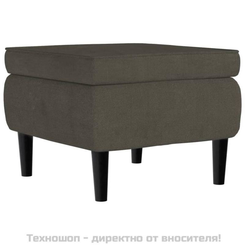 Табуретка с дървени крака, тъмносива, кадифе