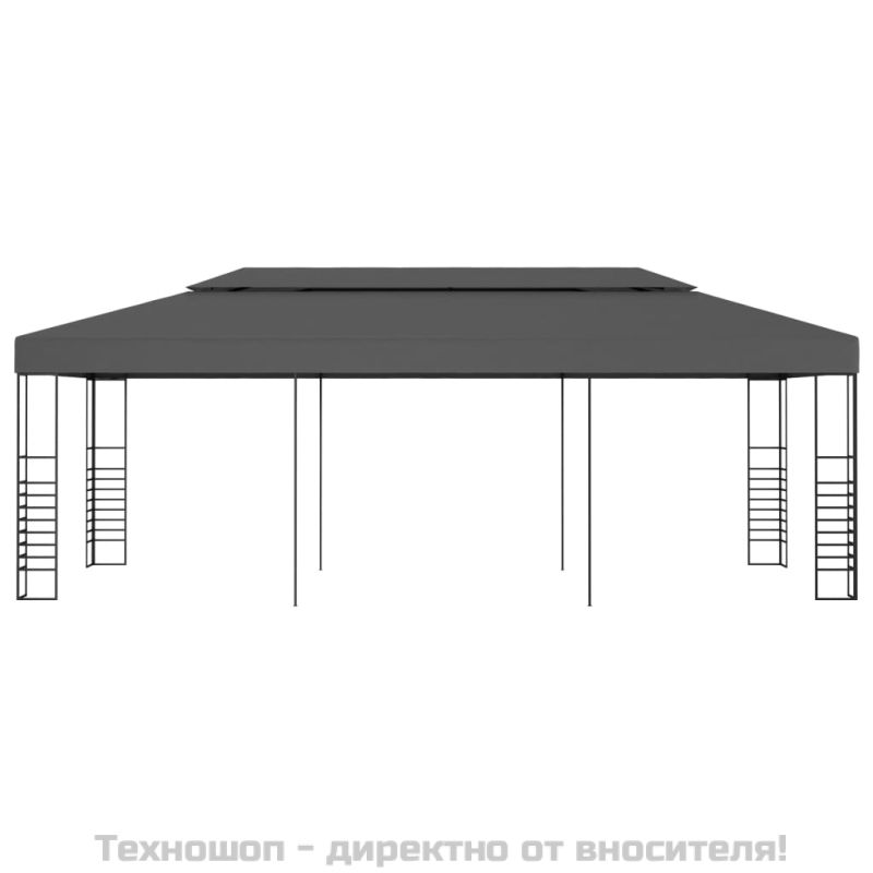 Тази градинска шатра ще бъде чудесна за различни събития на открито, като например малки събирания, сватби, партита, барбекю, къмпинг и т.н. Можете да я инсталирате в задния двор като голям, прекрасен сенник за вашето семейство и гости. Рамката е здрава и стабилна, благодарение на изцяло стоманената конструкция, а покривният навес е изработен от 100% полиестер с допълнително PA покритие, което да ви предпази от вредни ултравиолетови лъчи, както и от дъжда. То се прикрепя лесно за рамката на беседката. Забележка: Навесът не е проектиран за постоянна структура и не се препоръчва използването му при екстремни метеорологични условия.