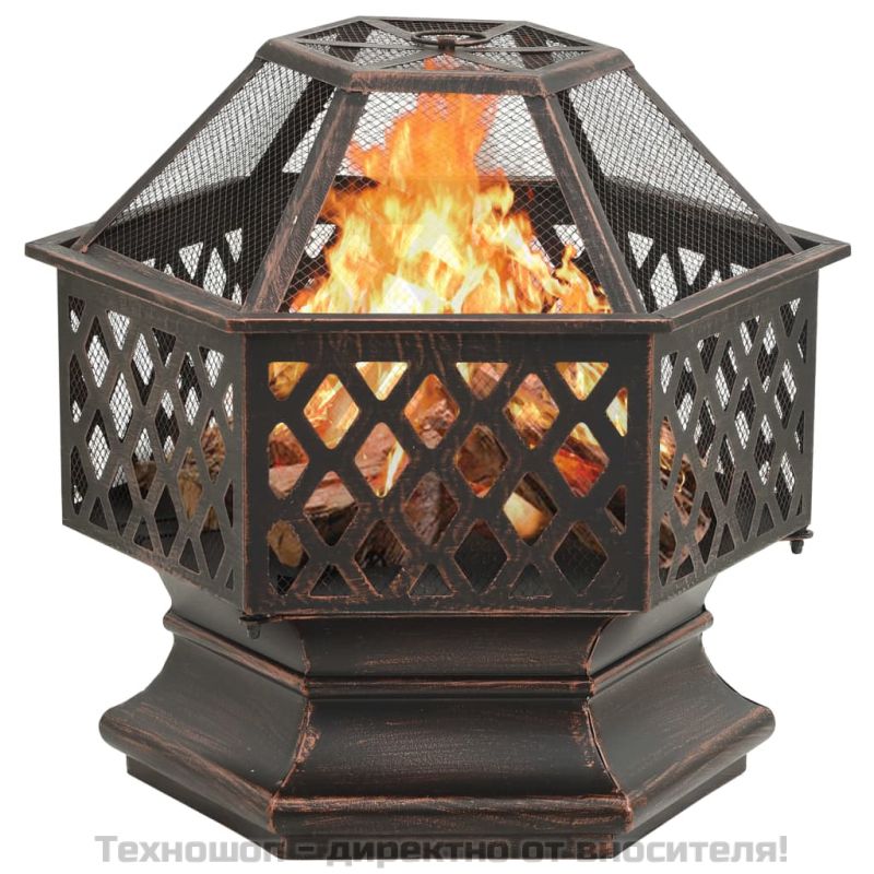 Това преносимо огнище с рустик стил е идеално за създаване на допълнителна топлина и уютна атмосфера във вашата градина или вътрешен двор. Стабилен материал: Стоманата е изключително твърд и здрав материал. Затова предлага здравина и стабилност. Изработено от стомана, огнището отлично поглъща и излъчва топлина.Практичен дизайн: С голяма и дълбока купа, тази камина позволява голям огън, на който вие и вашето семейство да се наслаждавате с часове. Също така мрежестият капак е снабден с удобен пръстен, за да може лесно да го пренасяте. В допълнение, включеният метален ръжен може да се използва както за премахване на мрежестия капак, така и за пренареждане на дървата.Допълнителна безопасност: Мрежата ви позволява да наблюдавате горящия огън и ви осигурява защита от него, както и предотвратява излитането на искри и частици. Забележка:Може да се използва само на открито. Не докосвайте продукта, когато вътре все още има горящи дърва или малко след това. ПРЕДУПРЕЖДЕНИЕ! Не използвайте на закрито! Пазете децата и домашните любимци настрана.