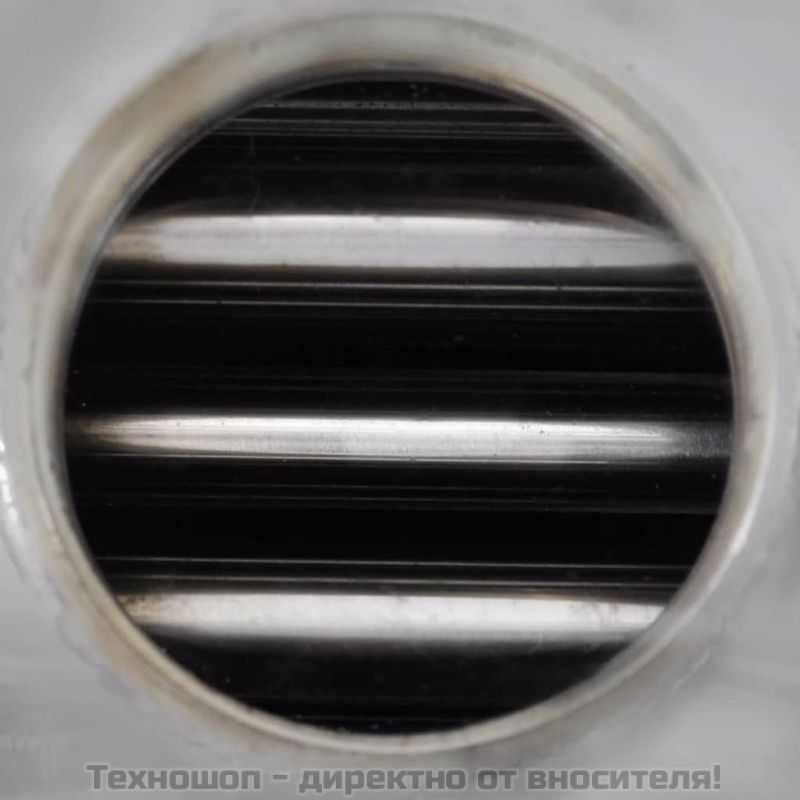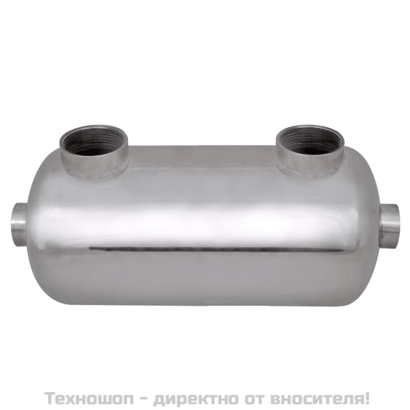 Този топлообменник с уникалния си дизайн представлява чудесно допълнение към басейна ви. Изработен от висококачествена неръждаема стомана, той е устойчив на корозия и е изключително траен. Изграден е от гофрирани тръби за максимална ефективност. Топлообменникът се използва, за да съхранява отделно водата в басейна и котелното, като същевременно осигурява ефикасно прехвърляне на топлина между двете системи. Гладката тръба и дизайнът на корпуса позволяват на водата да премине през топлообменника с висока скорост, като максимално запази топлината си по време на преноса.