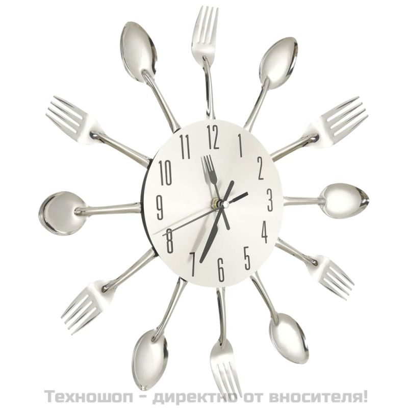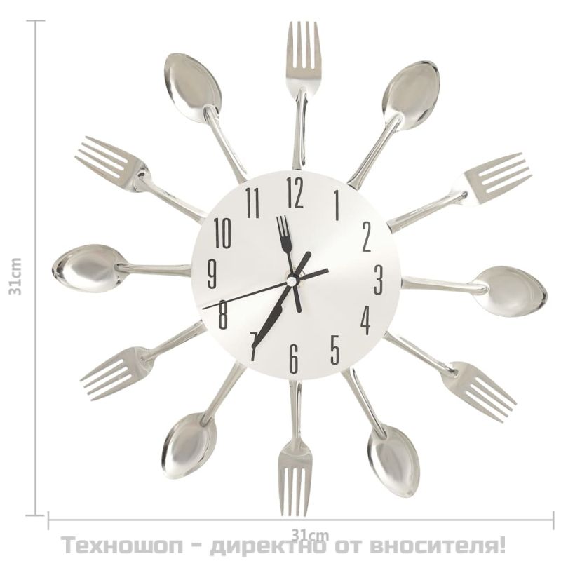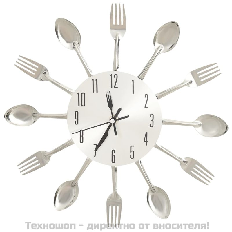Стенен часовник дизайн на лъжица и вилица сребро 31 см алуминий