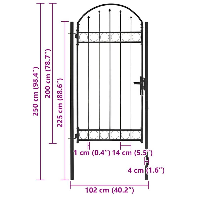 Портална ограда ASSEN с арковиден връх, стомана, 102x200 см, черна