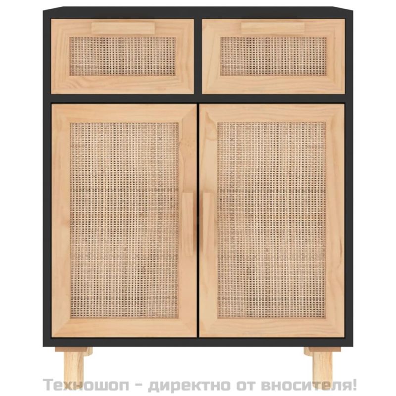 Сайдборд, черен, 60x30x75 см, бор масив и естествен ратан